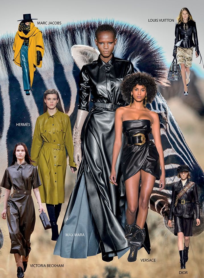 Cùng với sự trở lại của thập niên 90, chất liệu da đang lấy lại vị thế vốn có của mình. Không chỉ bó hẹp trong thiết kế áo khoác, da còn được biến tấu trên chiếc đầm đen gợi cảm, hay quần tây, quần bike-shorts thời thượng.
